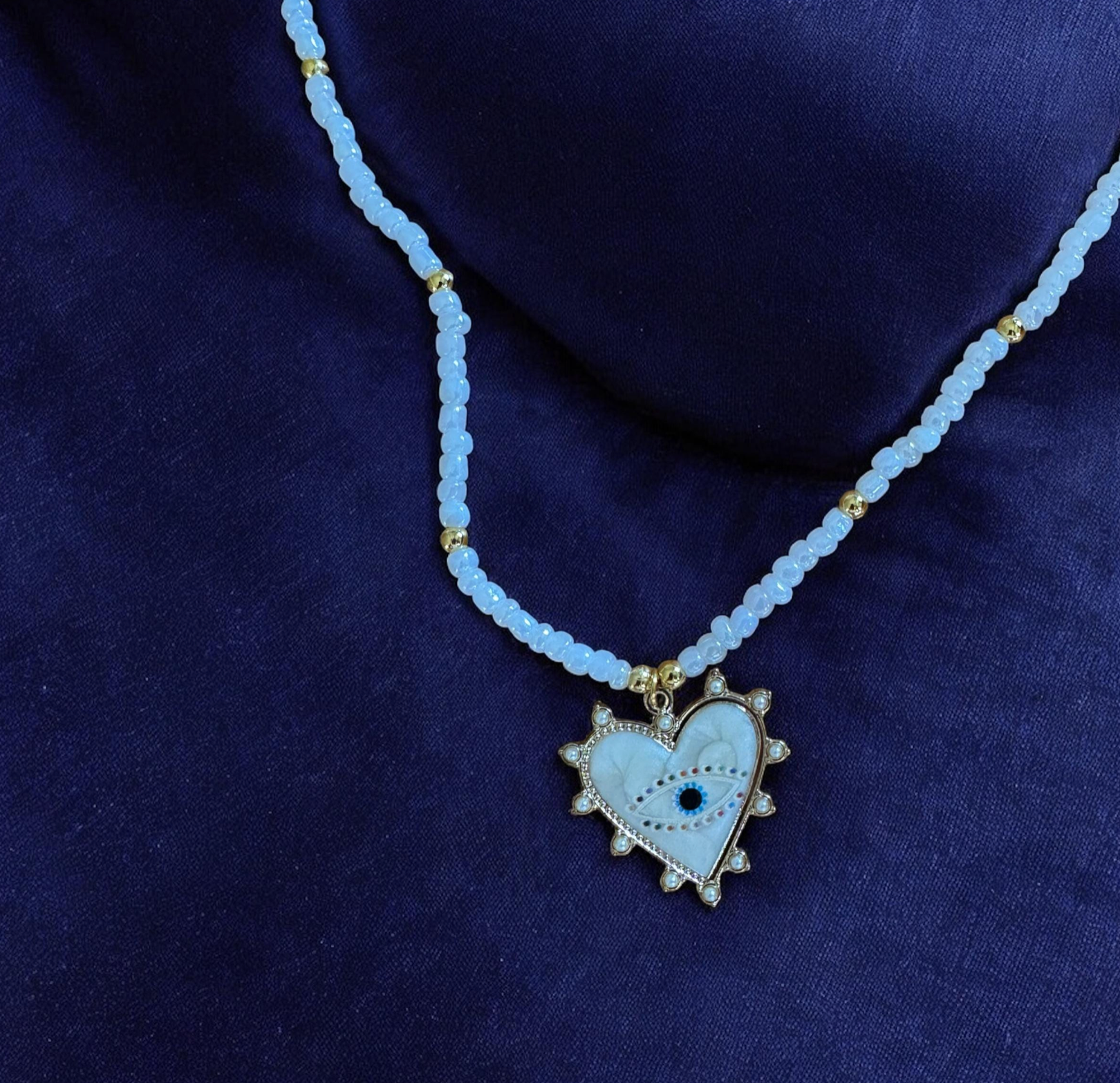 Beschreibung: Die HeartGuard – Light Edition ist mehr als nur ein Schmuckstück – sie ist ein Schutzsymbol in eleganter Form. Schimmernde milchweiße Perlen treffen auf ein verziertes Herz mit dem klassischen Nazar-Auge, das dich vor negativen Energien bewahren soll. Goldene Details verleihen der Kette einen Hauch von Luxus und machen sie zu einem ganz besonderen Begleiter. Größe: Einheitsgröße, elastisch.