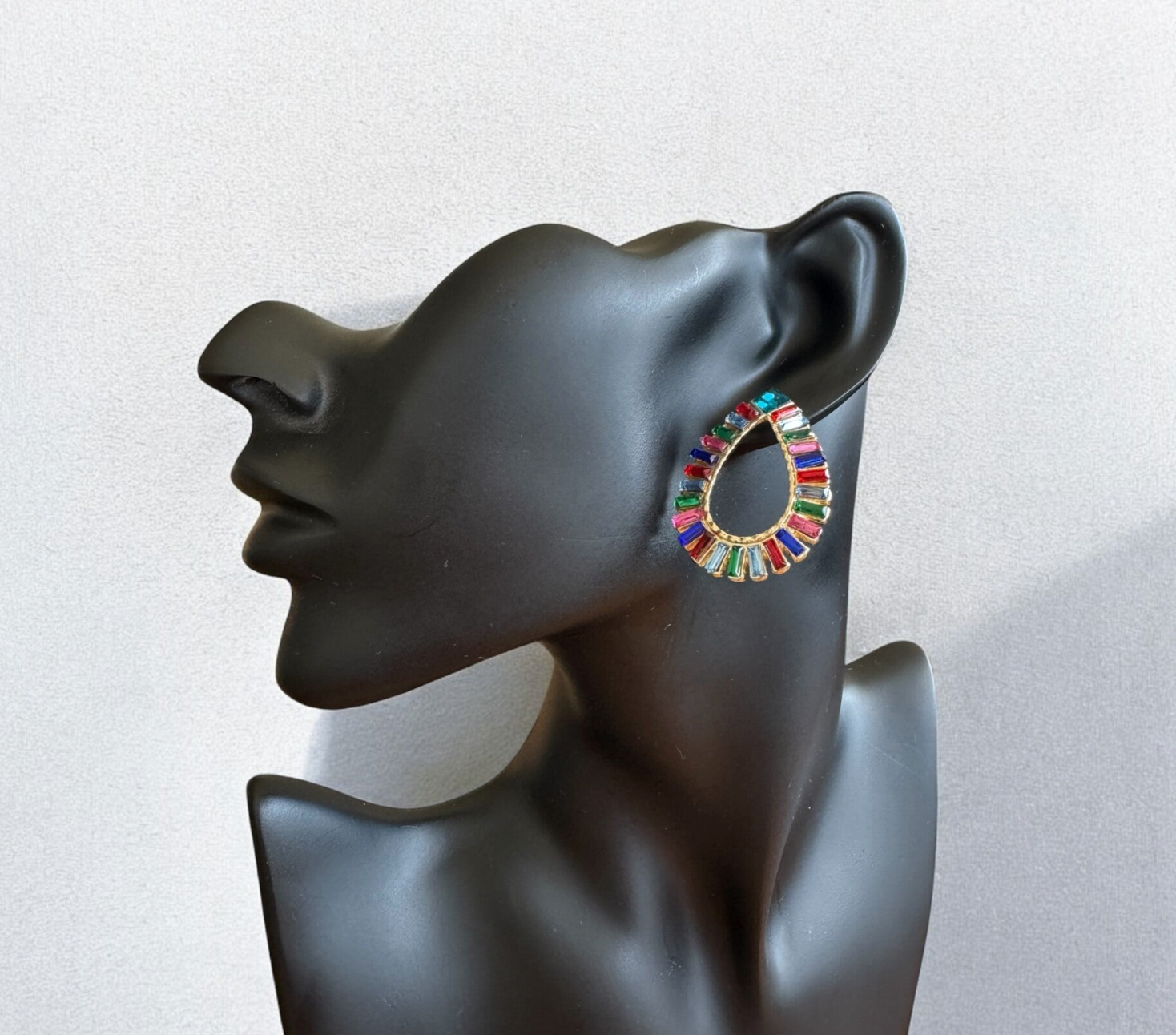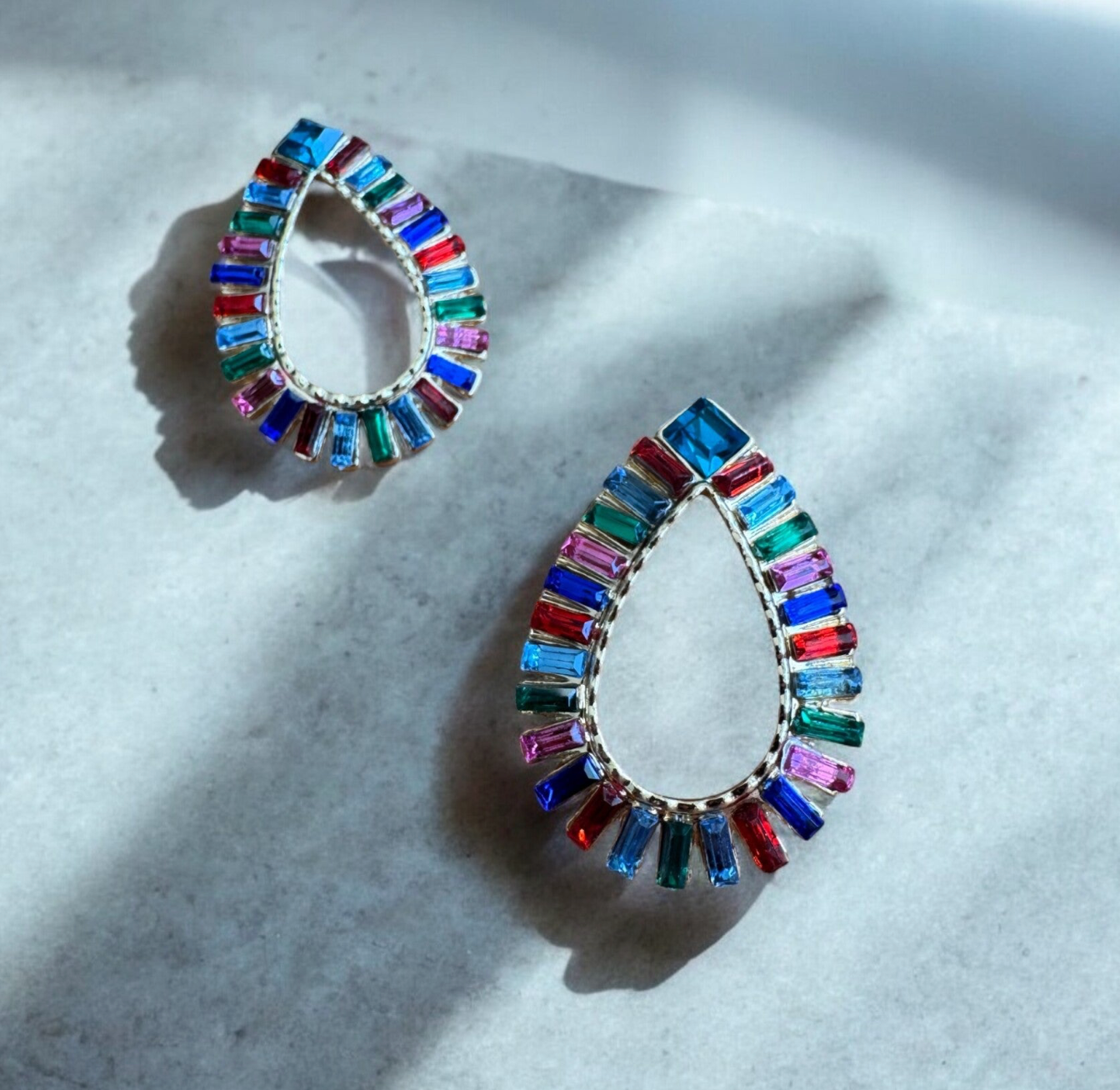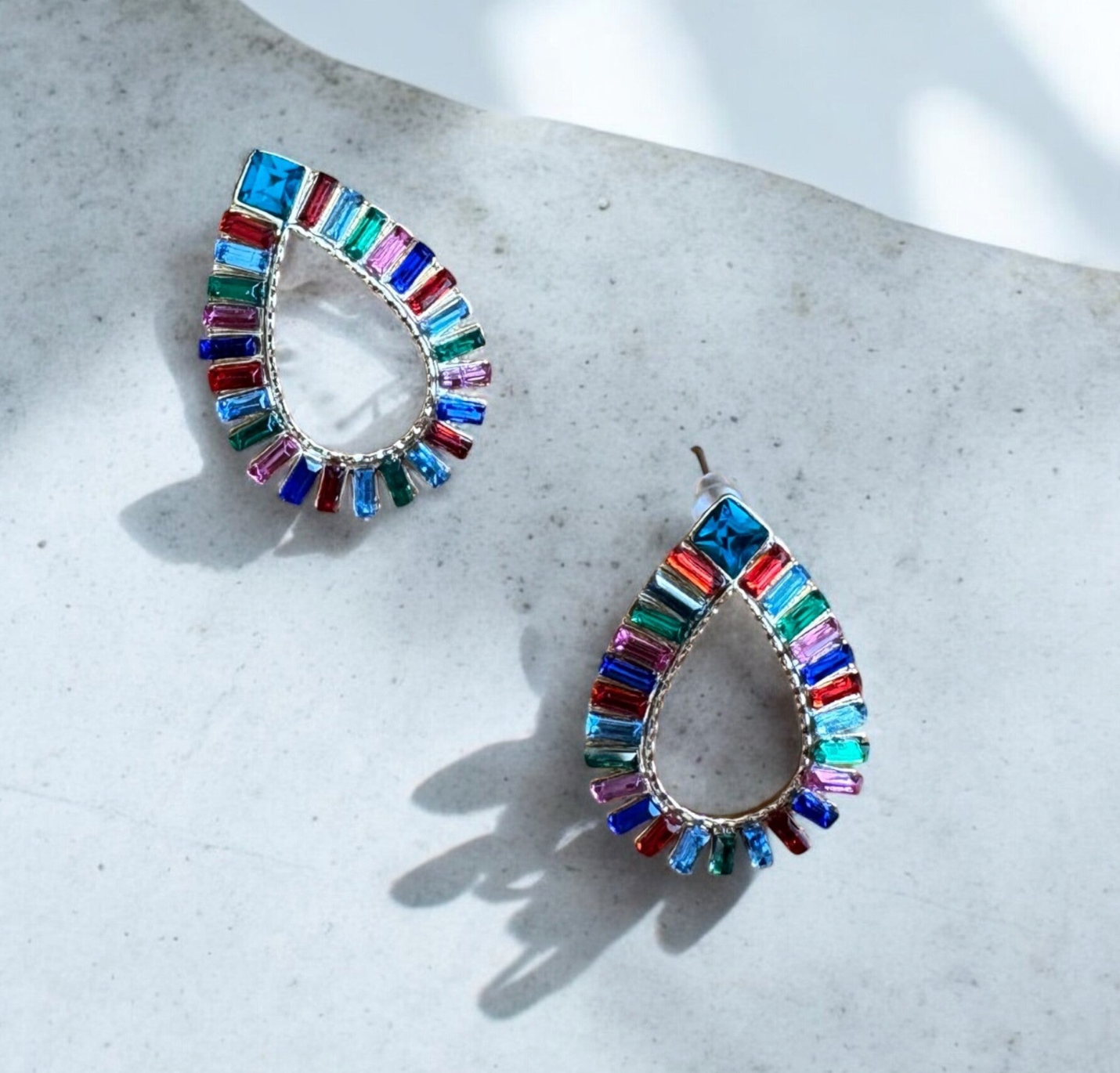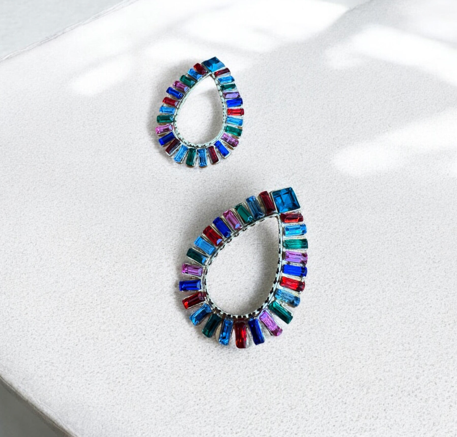 Beschreibung: Ein echtes Statement-Piece! Die Crystal Carnival Ohrringe kombinieren eine elegante Tropfenform mit leuchtend facettierten Kristallen in Regenbogenfarben. Das Design vereint Extravaganz mit Leichtigkeit – perfekt für besondere Anlässe oder um deinem Alltagslook einen funkelnden Twist zu verleihen.