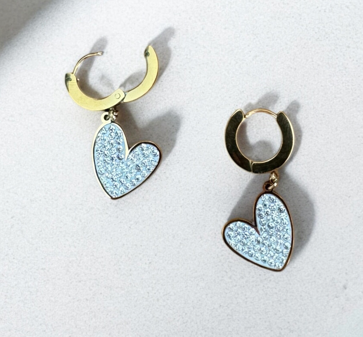 Beschreibung: Die Crystal Love Ohrringe sind das perfekte Zusammenspiel aus Romantik und Glamour. Die goldfarbenen Creolen tragen funkelnde Herz-Anhänger, besetzt mit klaren Strasssteinen, die bei jedem Lichtspiel glänzen. Elegant, verspielt und absolut im Trend – für besondere Momente oder als glänzendes Statement im Alltag. Material: 316L Edelstahl und Zirkonsteine.