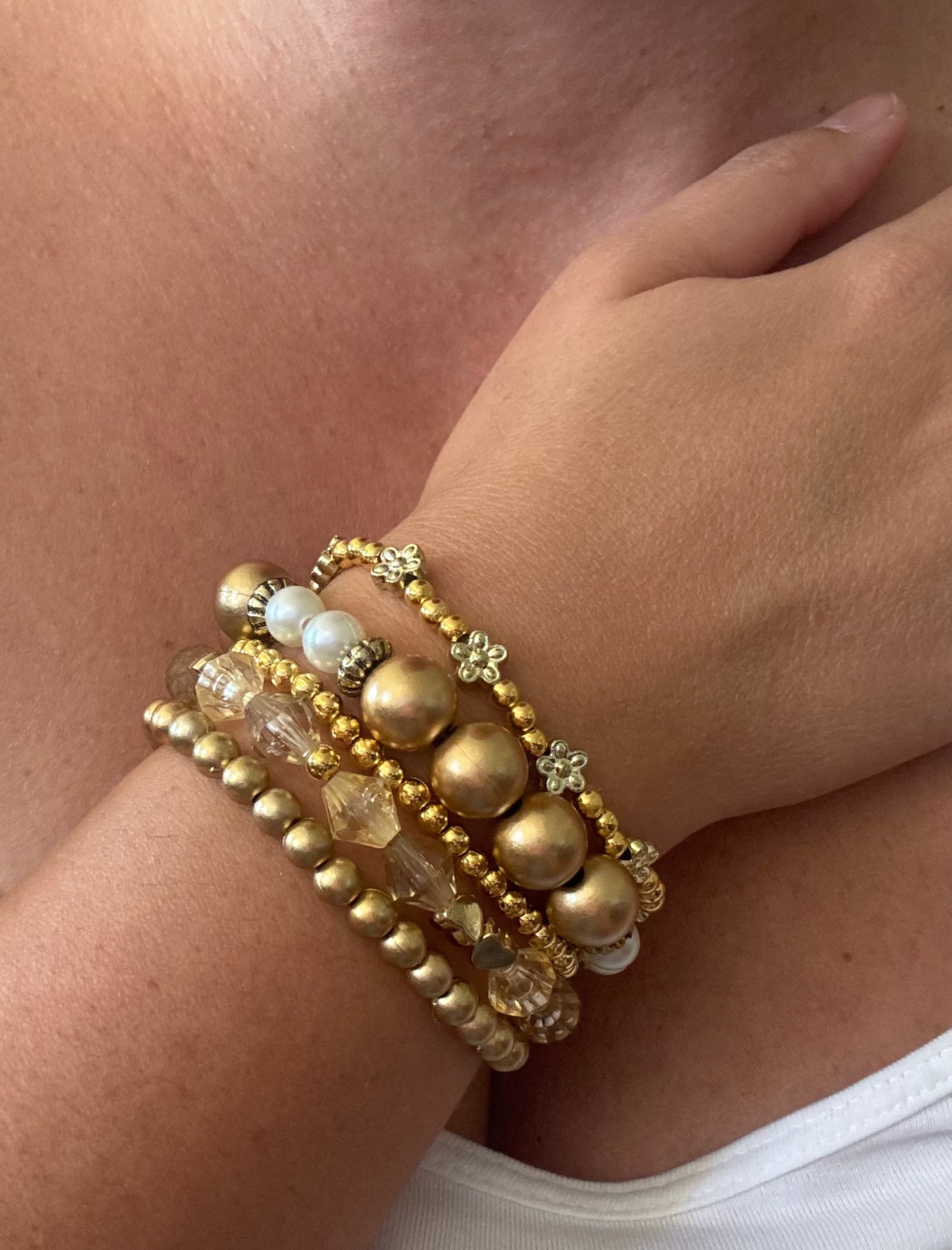 Beschreibung: Das Perlenarmband vereint elegante goldene Perlen mit feinen weißen Perlen, die für eine luxuriöse und edle Ausstrahlung sorgen – wie auf dem Foto zu sehen. Größe: Einheitsgröße, elastisch.