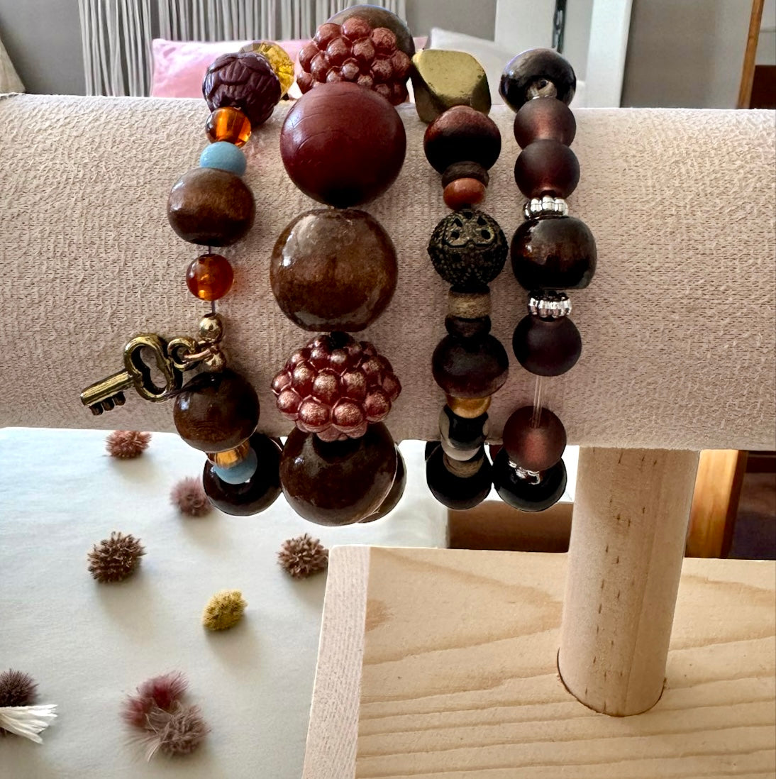 Beschreibung: Feines Boho-Perlenarmband mit braunen Perlen, das natürliche Eleganz und stilvolle Schlichtheit vereint. Größe: Einheitsgröße, elastisch.